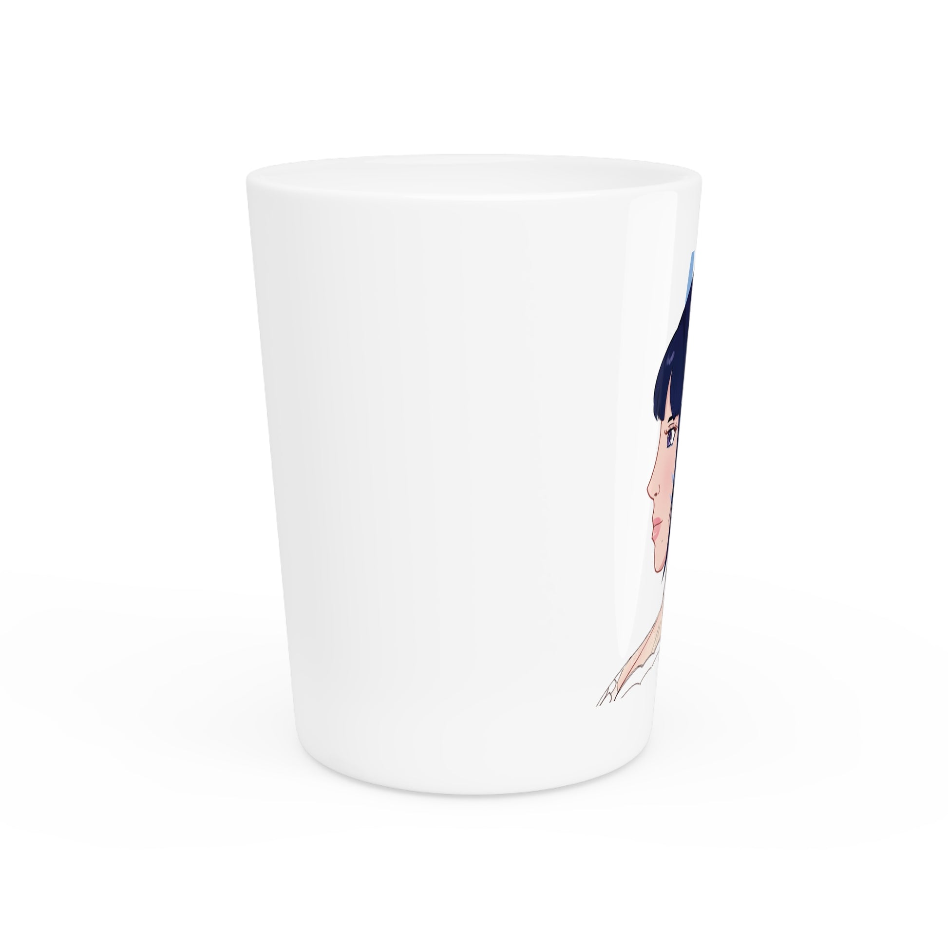 This ceramic shot glass carries a delicate, anime-inspired portrait that feels like a quiet moment captured on porcelain. The soft profile of a blue-haired character, detailed with floral accents and feather-like highlights, gives the piece an intimate, artistic energy. Small but expressive, it fits naturally on a shelf with other collectibles or tucked into a display with prints and pins. Use it as part of a cozy ritual for sharing a toast with friends who understand niche fandoms, or let it stand alone as a tiny collectible that sparks conversation. The vivid, crisp print keeps the artwork bright over time, and the choice of white or black interior adds subtle contrast to suit your shelf or bar aesthetic.